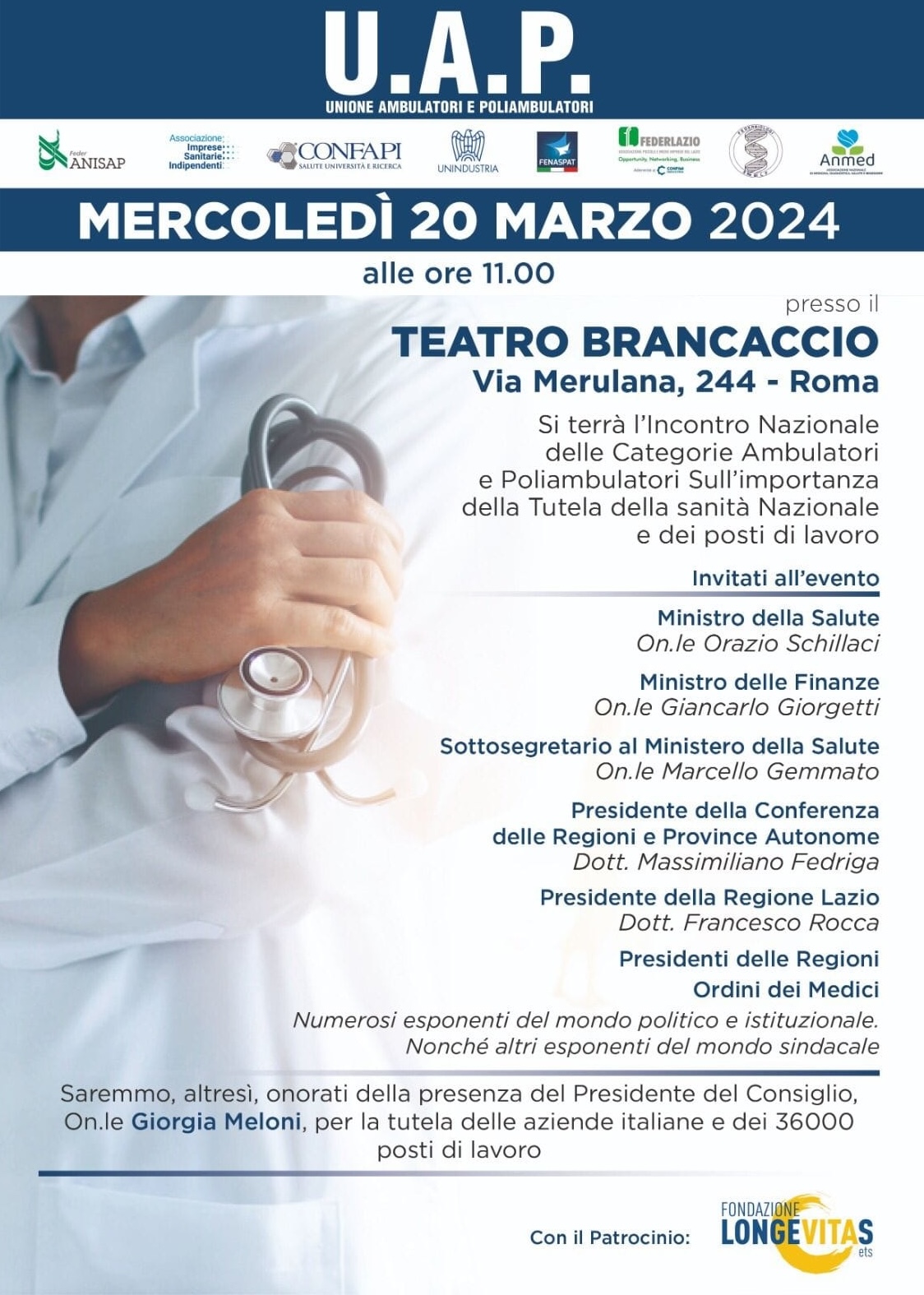 U.A.P. – Unione Ambulatori e Poliambulatori (Roma). Evento Nazionale del 13 maggio 2024 Hotel Majesty – Bari sul tema: “LE SFIDE DELLA SANITA’ TERRITORIALE. Il valore del capitale umano e la capillarità del servizio”. Esiti della Manifestazione organizzata da Confapi Puglia sui temi nazionali più critici del Comparto del privato accreditato a cui è intervenuto il Sottosegretario alla Sanità On. Marcello Gemmato. Pubblichiamo Comunicato Stampa UAP, testo integrale del discorso e video del Segretario Generale Polizzi di FENASPAT. Foto Evento e Rassegna Stampa in progress.